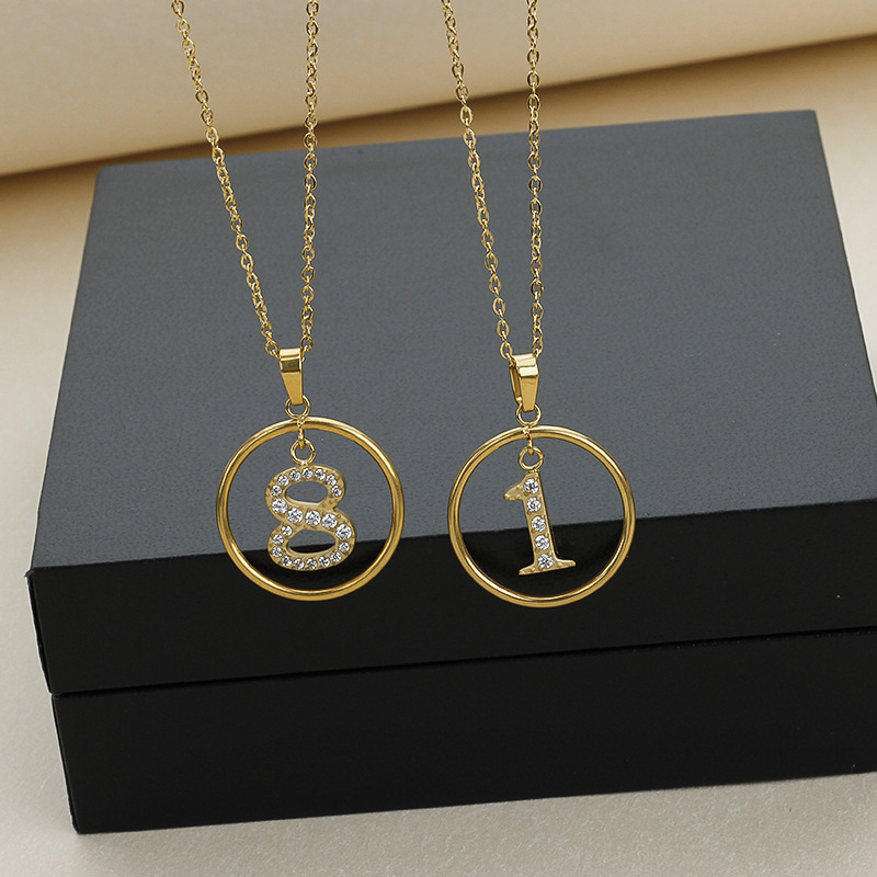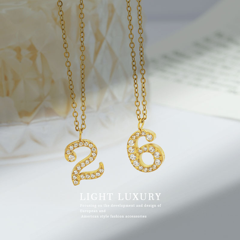 Cross-border explosive fashion digital necklace light luxury inset zircon titanium steel collarbone chain chain women's pendant wholesale