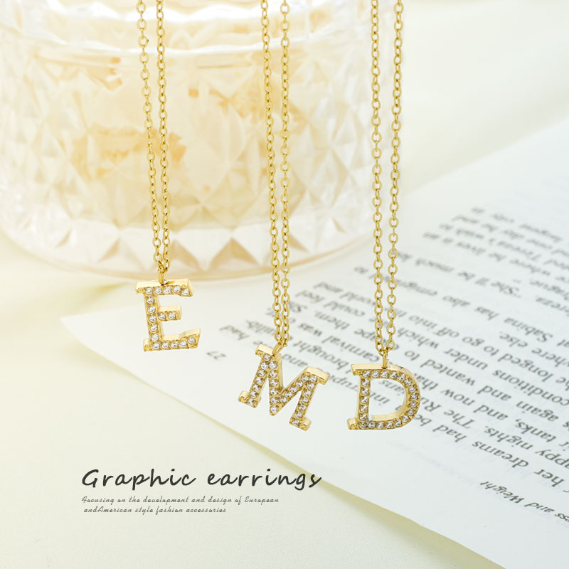 European and American fashion personality 26 English letter necklace light luxe zircon titanium steel collarbone chain chain women's pendant wholesale