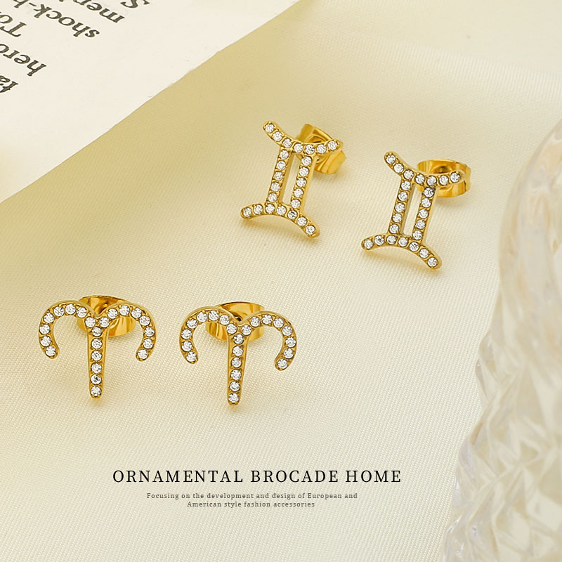 New fashion exquisite twelve constellation titanium steel earrings female light luxury stainless steel full diamond do not fade earrings wholesale