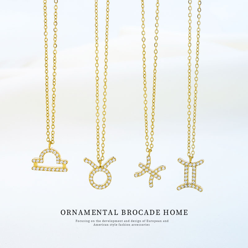 Fashion twelve constellations titanium steel necklace light luxury micro inset collarbone chain stainless steel women pendant do not fade jewelry wholesale