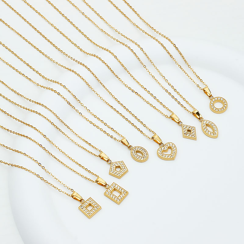 Personality geometric square heart zircon necklace fashion light luxury titanium steel clavicle chain female stainless steel necklace wholesale